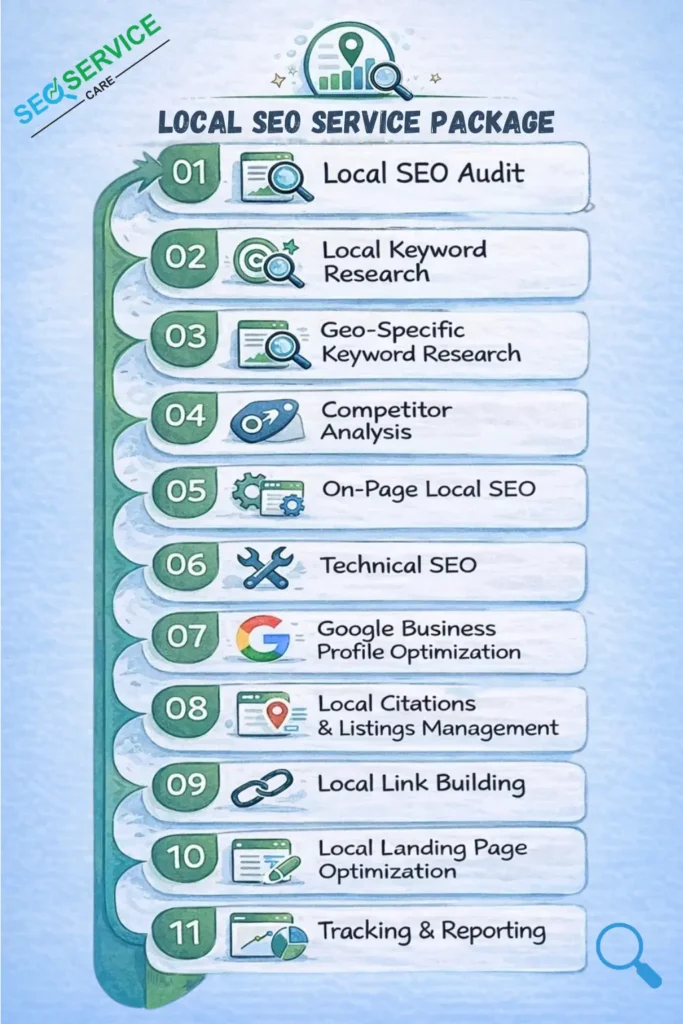 Let’s change that starting today! At SEO Service Care, we don’t just promise rankings, we prove impact. Our Free Local SEO Audit reveals: